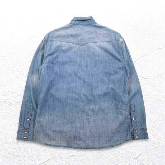 Lee デニム ウエスタンシャツ L インディゴ ブルー コットン 胸ポケット スナップボタン