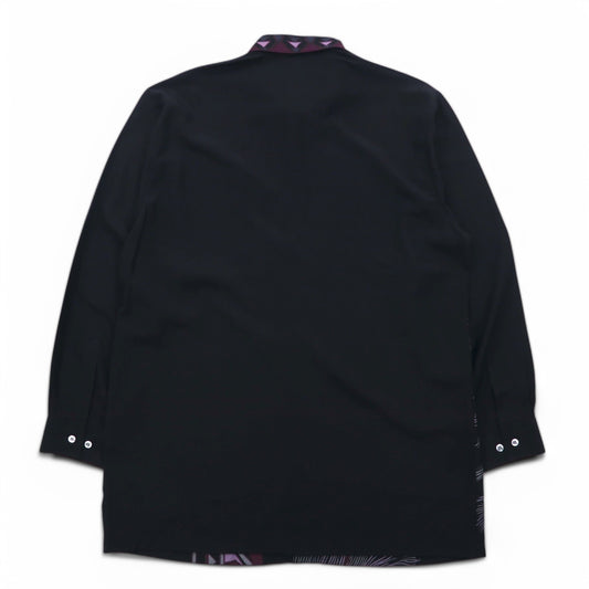 Vintage 90s Japan Made Retro Shirt punto 90年代 異素材切り替え デザイン ポリシャツ L ブラック 日本製