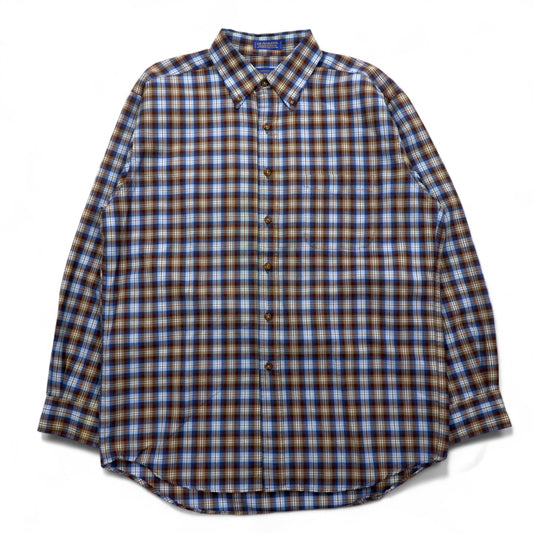 PENDLETON ウール チェック ボタンダウンシャツ L ブルー ブラウン メキシコ製