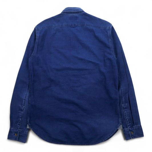 HBNS ワーク デニムシャツ S インディゴ ブルー ロゴ刺繍 胸ポケット 日本製