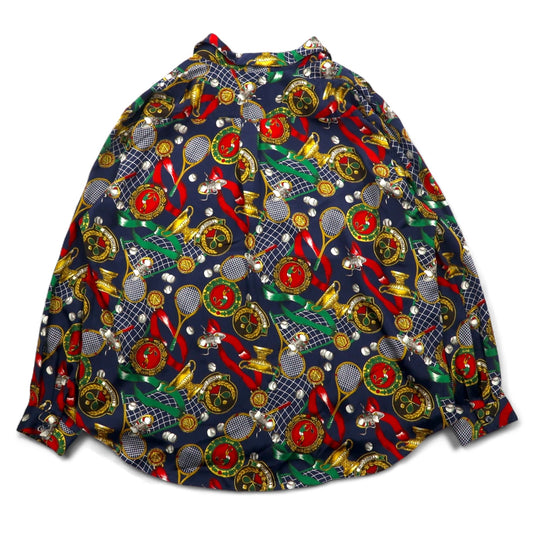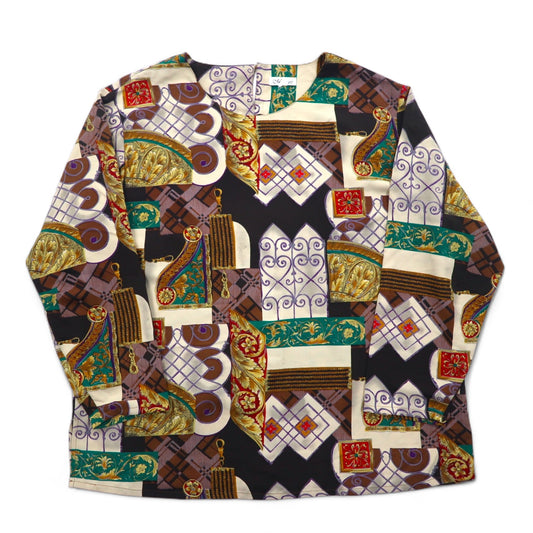Vintage 90s Retro Patterned Blouse Moraure スカーフ柄 レトロ ブラウス XL マルチカラー ポリエステル