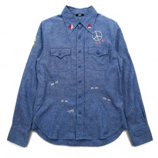 TMT スーベニア 刺繍 シャンブレーシャツ M インディゴ ブルー BIG HOLIDAY 日本製