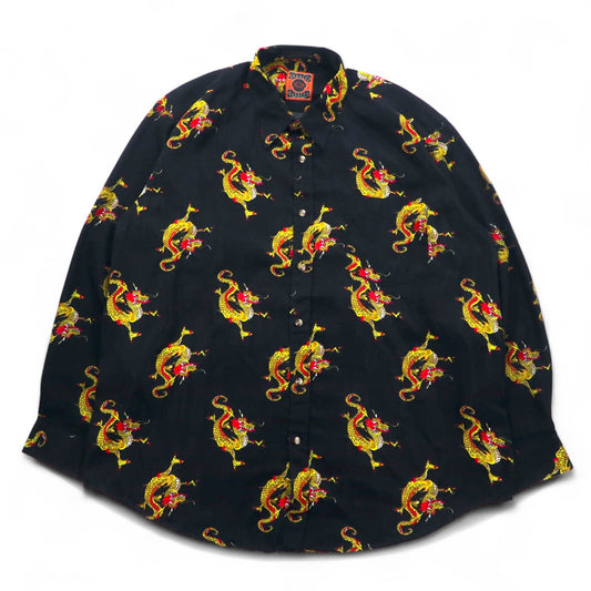 Vintage 90s China Dragon Patterned Shirt DAGACCI ポリシャツ XL ブラック 総柄 龍