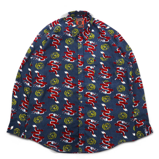 Vintage 90s China Dragon Patterned Shirt DAGACCI ポリシャツ L ブルー 総柄 龍