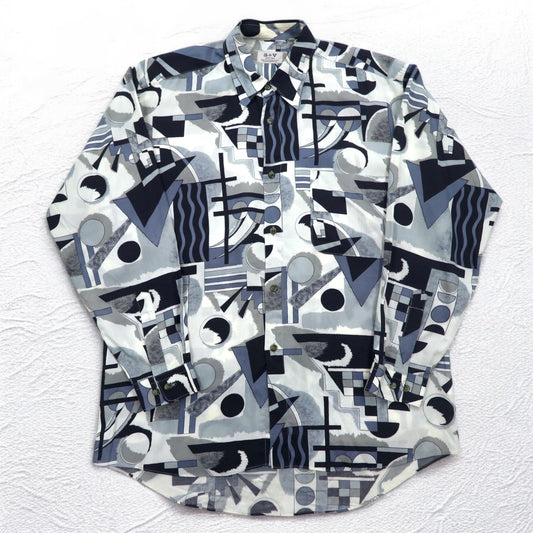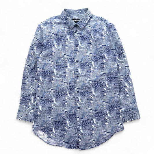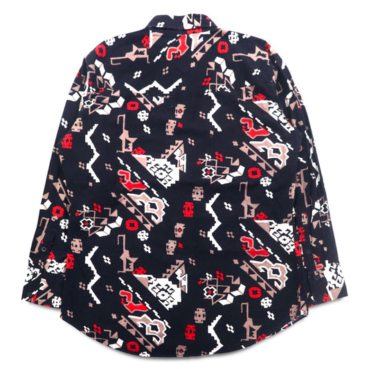 EMPORIO ARMANI 総柄 ドレスシャツ S ネイビー コットン チュニジア製