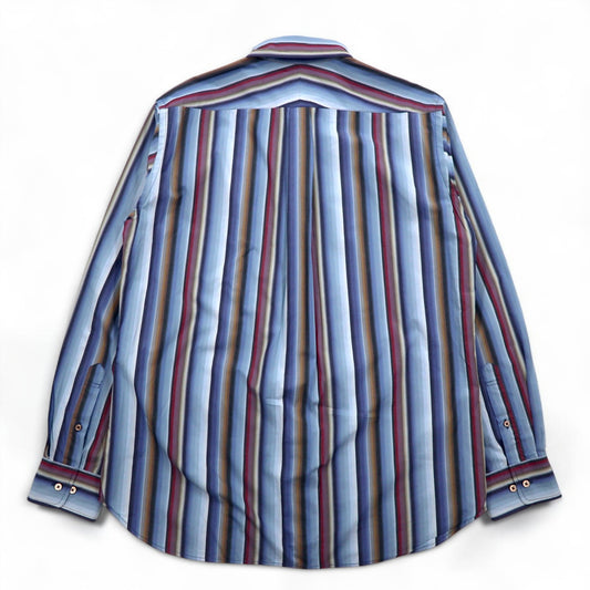 ZEPHYR ( D'URBAN ) マルチストライプ ボタンダウンシャツ XL ブルー イタリア製生地