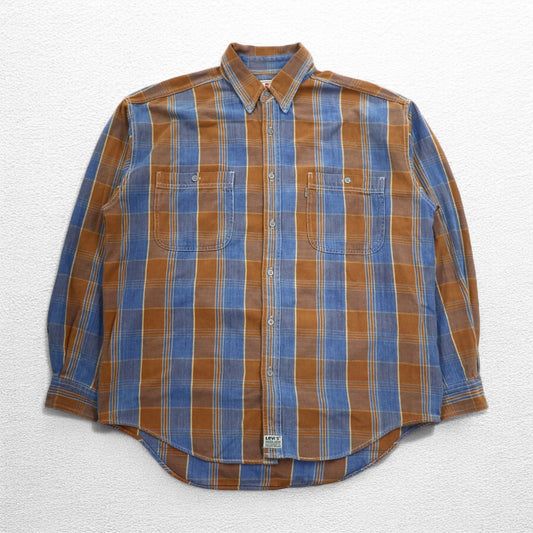 Levi's 90年代 ボタンダウン フランネルシャツ L ブラウン チェック シルバータブ 60507-1282 832M