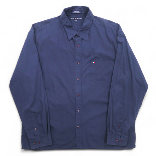 TOMMY HILFIGER 90年代 ドレスシャツ XXL ネイビー 胸ポケット ビッグサイズ ワンポイントロゴ