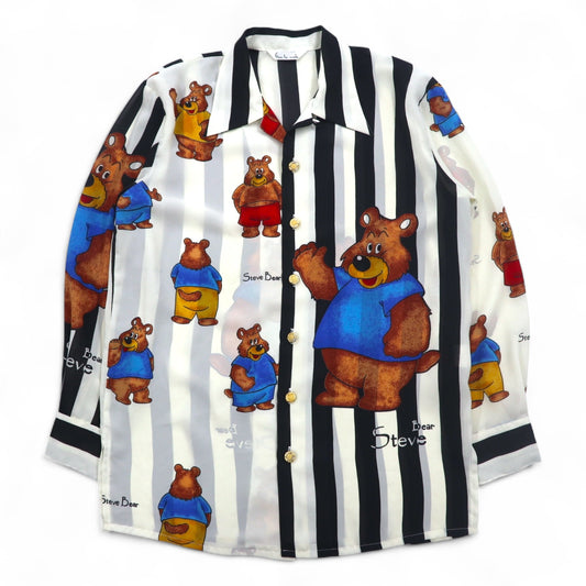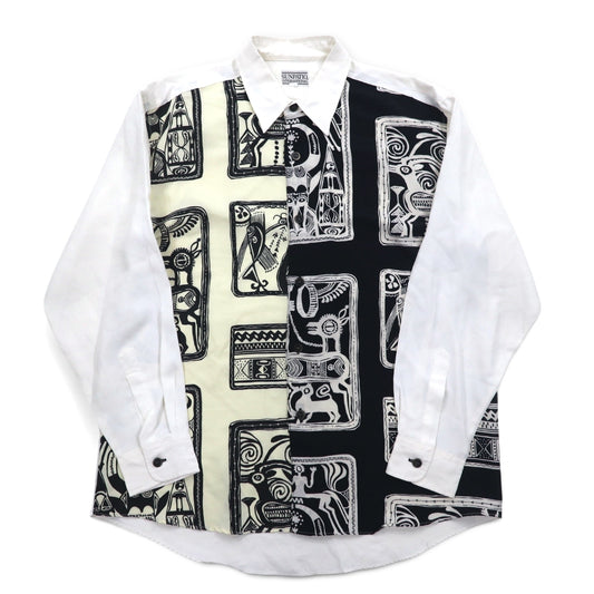 Vintage 90s Japan Made Retro Shirt 90年代 SUNPATIO ポリシャツ FREE ホワイト 総柄 日本製