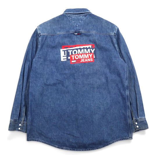 TOMMY JEANS バックプリント デニムシャツ L インディゴ ブルー スナップボタン RELAXED FIT DM0DM06735