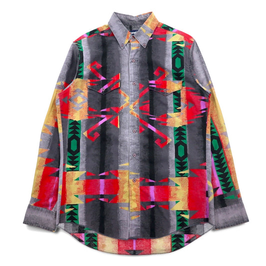 WRANGLER 90年代 USA製 ネイティブ柄 ボタンダウン ウエスタンシャツ XL グレー コットン