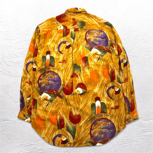 TRUSSARDI 90年代 オールド 総柄 レトロシャツ XL オレンジ レーヨン ビッグサイズ 日本製