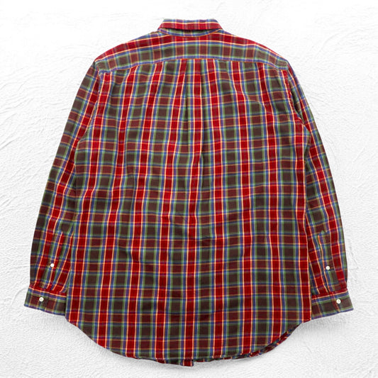 Ralph Lauren 90年代 ボタンダウンシャツ L TALL レッド チェック スモールポニー刺繍 ビッグサイズ