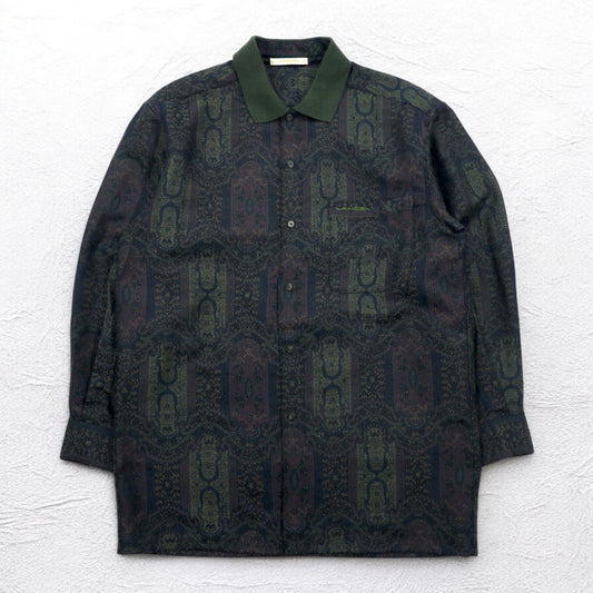 DESIGNWORKS ペイズリー柄 ドレスシャツ M グリーン 総柄 コットン 日本製