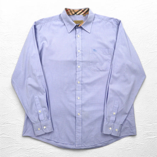 BURBERRY ノバチェック切り替え ドレスシャツ 2XL ブルー ギンガムチェック 現行タグ 胸ポケット