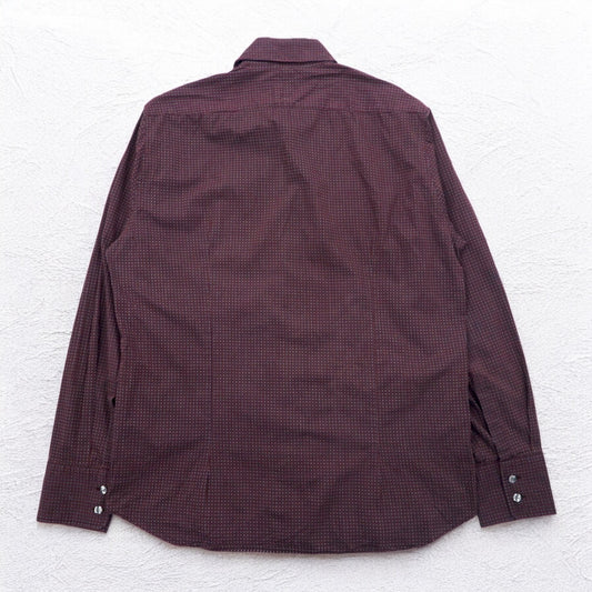 HUGO BOSS ドレスシャツ L ボルドー コットン 小紋柄