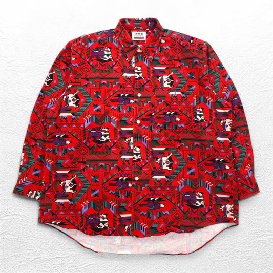 Vintage Japan Made Retro Shirt CALICO BALL ネイティブ柄 シャツ FREE レッド 日本製