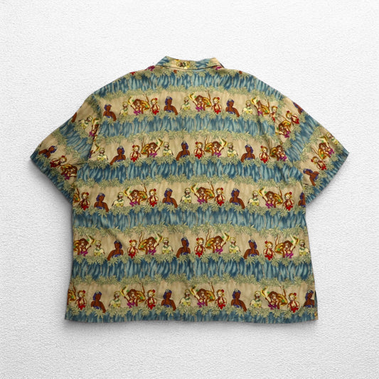 CAMPIA MODA 90年代 ビッグサイズ アロハシャツ L マルチカラー レーヨン 総柄 ビーチ カジノ