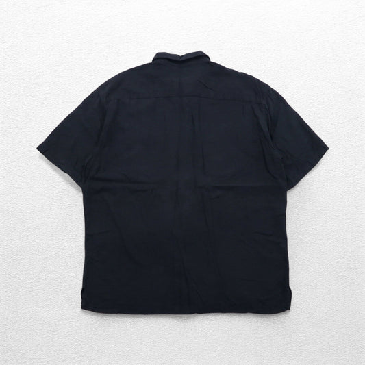 Burma Bibas 開襟 半袖 シルク オープンカラーシャツ XL ブラック ボックスシルエット