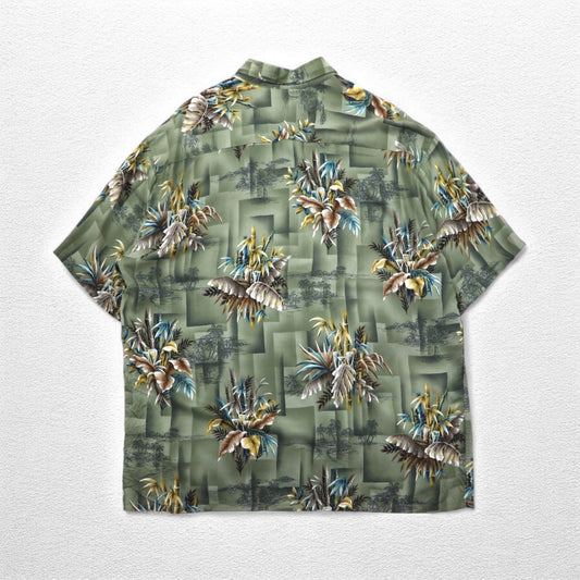 CAMPIA MODA アロハシャツ XL カーキ レーヨン 総柄 ボタニカル 胸ポケット