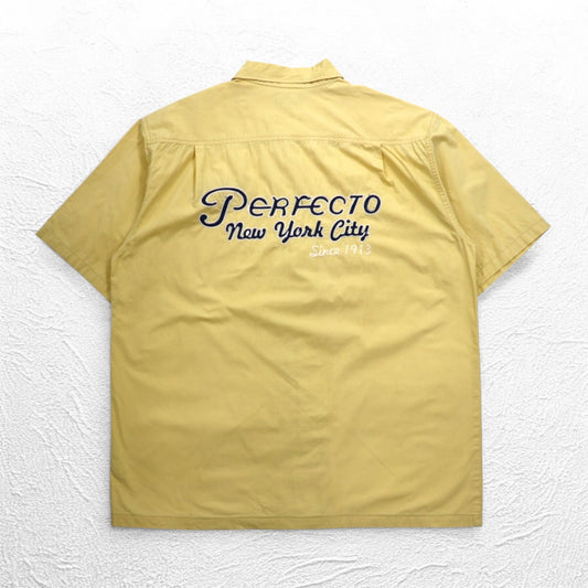 Schott 半袖 ワークシャツ XL イエロー コットン PERFECTO 胸ポケット ロゴ刺繍