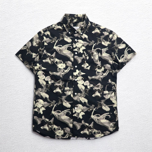 SATURDAYS NYC 半袖 ボタンダウンシャツ M ブラック モノトーン コットン 総柄