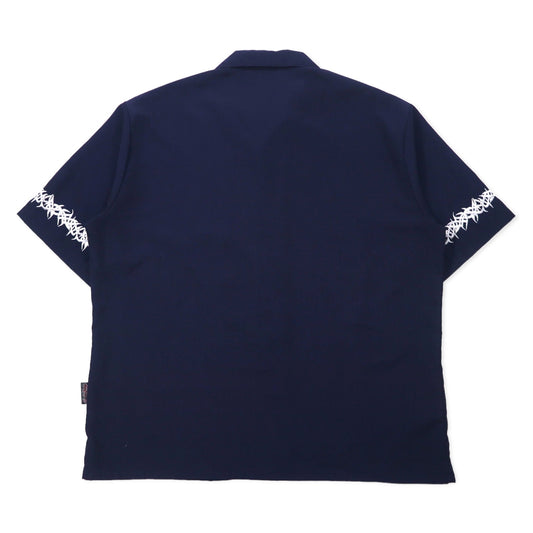 Sapphire Lounge 90年代 オープンカラーシャツ アロハシャツ XL ネイビー ポリエステル 刺繍