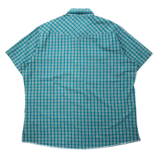 Wrangler 90年代 半袖 ウエスタンシャツ 3XT グリーン チェック コットン スナップボタン ビッグサイズ
