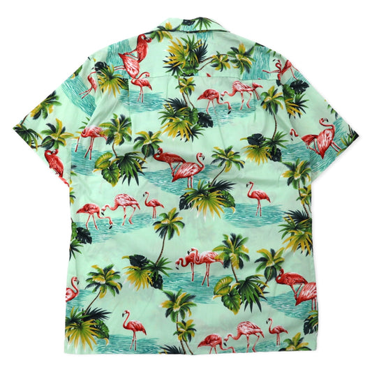 ハワイ ( USA製 ) 90年代 PACIFIC LEGEND オープンカラー アロハシャツ M グリーン コットン 総柄 フラミンゴ ビーチ