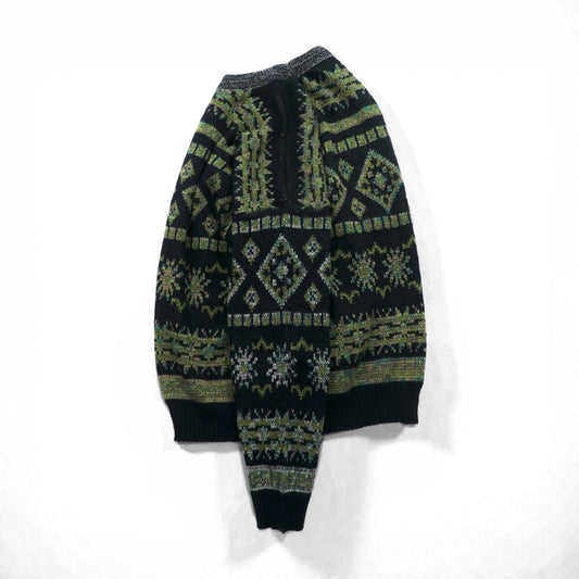 90s Japan Vintage Jacquard Knit DEMAIN CLAIR フェアアイル ニット セーター L ウール 総柄 90年代 日本製