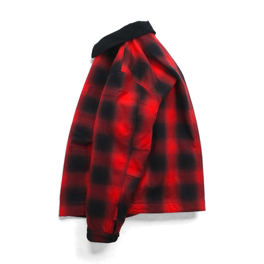 HOUSTON オンブレグレンチェック ビエラ 中綿 カバーオール ハンティングジャケット L レッド 襟コーデュロイ 2024FW 51406