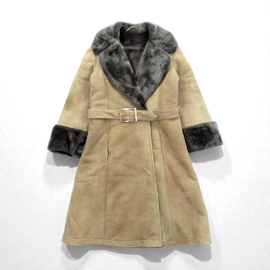 LOEWE ムートンコート シアリング ロングコート XL ファー襟 ベルト付き スペイン製 ヴィンテージ