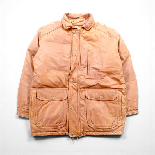 Eddie Bauer 90年代 ピーチスキン ハンティングジャケット XL ベージュ ポリエステル 襟レザー ドローコード キルティングライナー