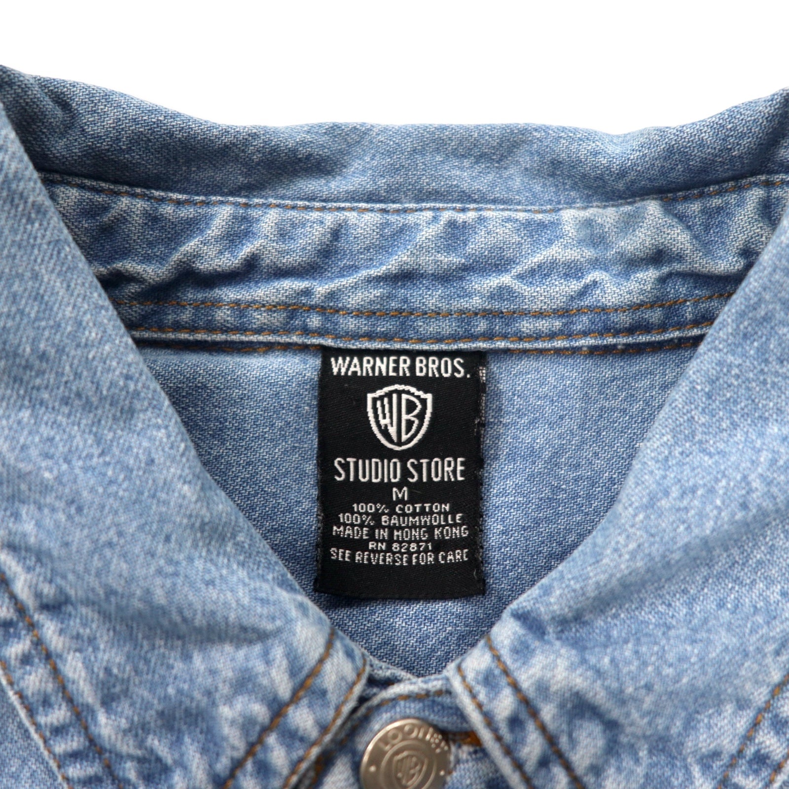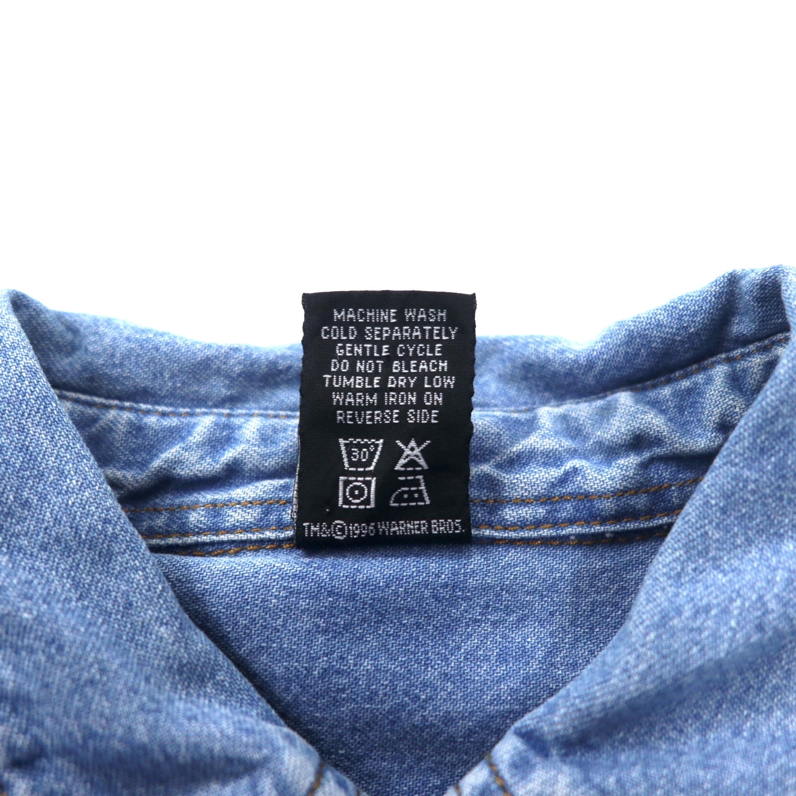 WARNER BROS. 90年代 ビッグサイズ キャラクター刺繍 デニムシャツ M ブルー コットン LOONEY TUNES ワイリー・コヨーテ