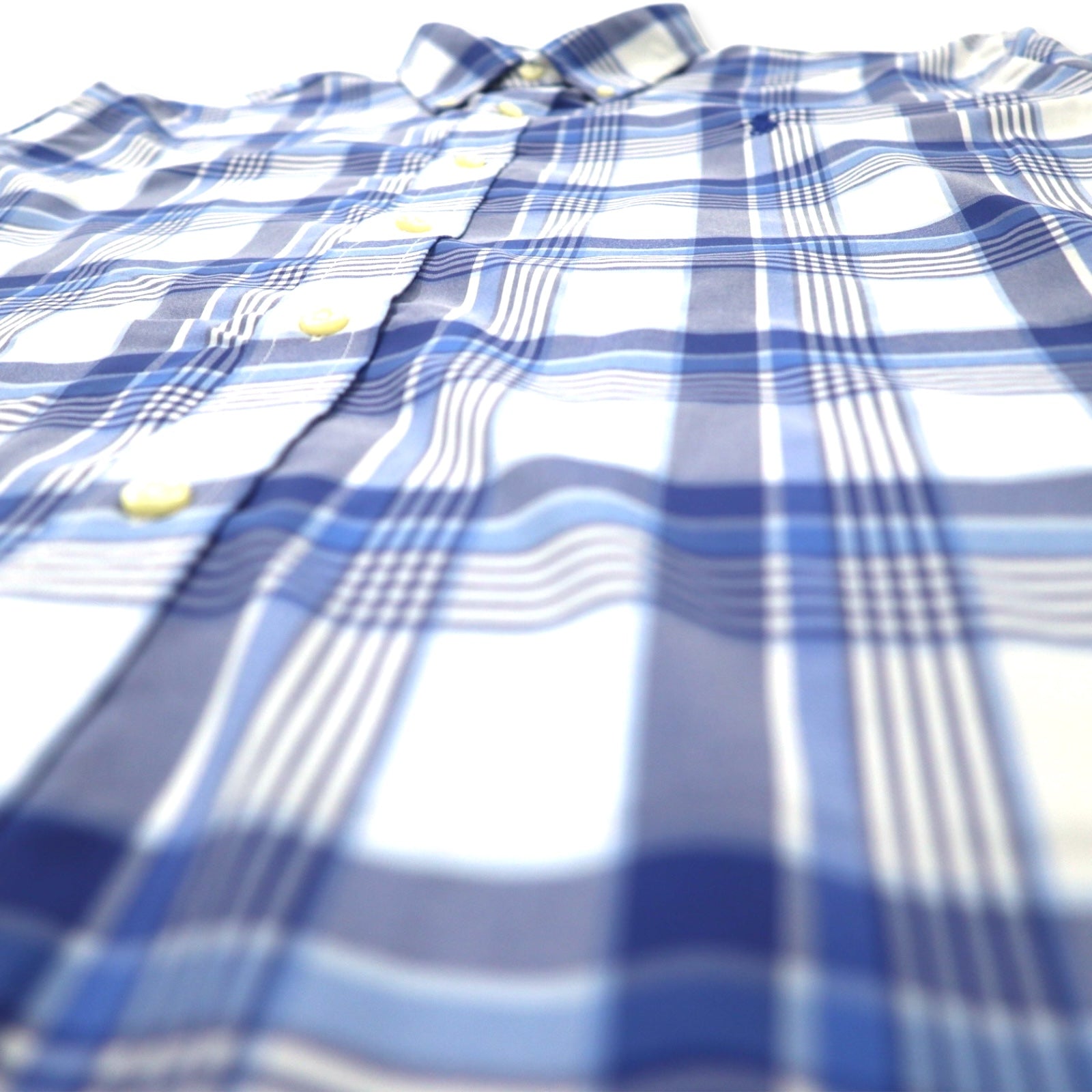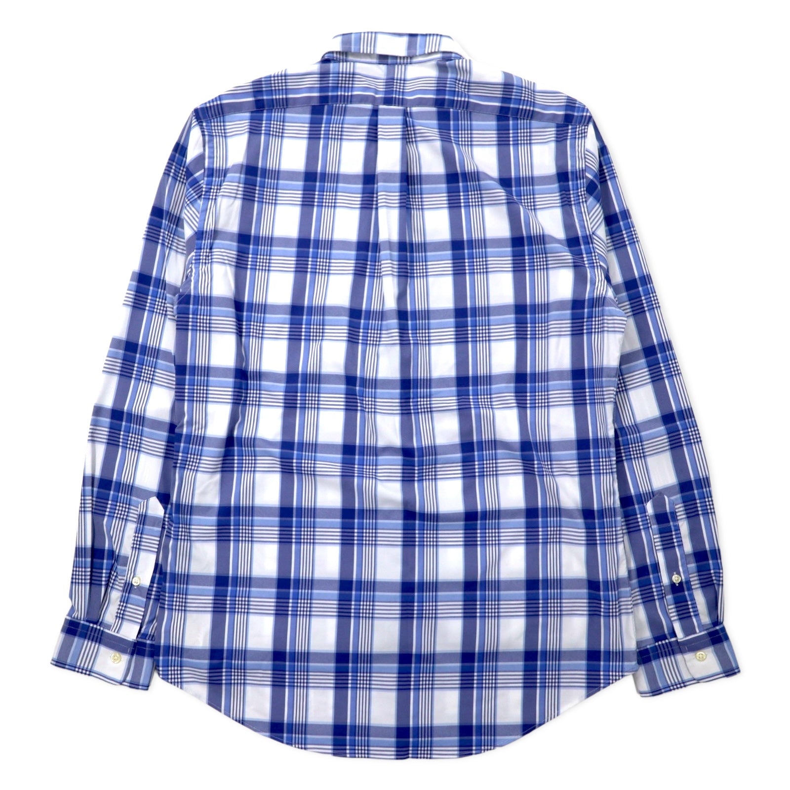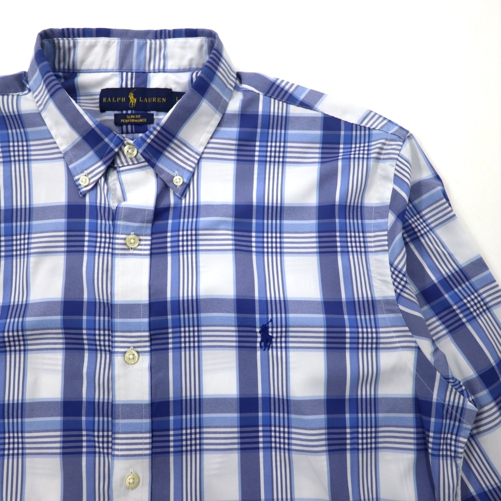 RALPH LAUREN スリムフィット パフォーマンス ボタンダウンシャツ L ブルー チェック ナイロン ストレッチ スモールポニー刺繍