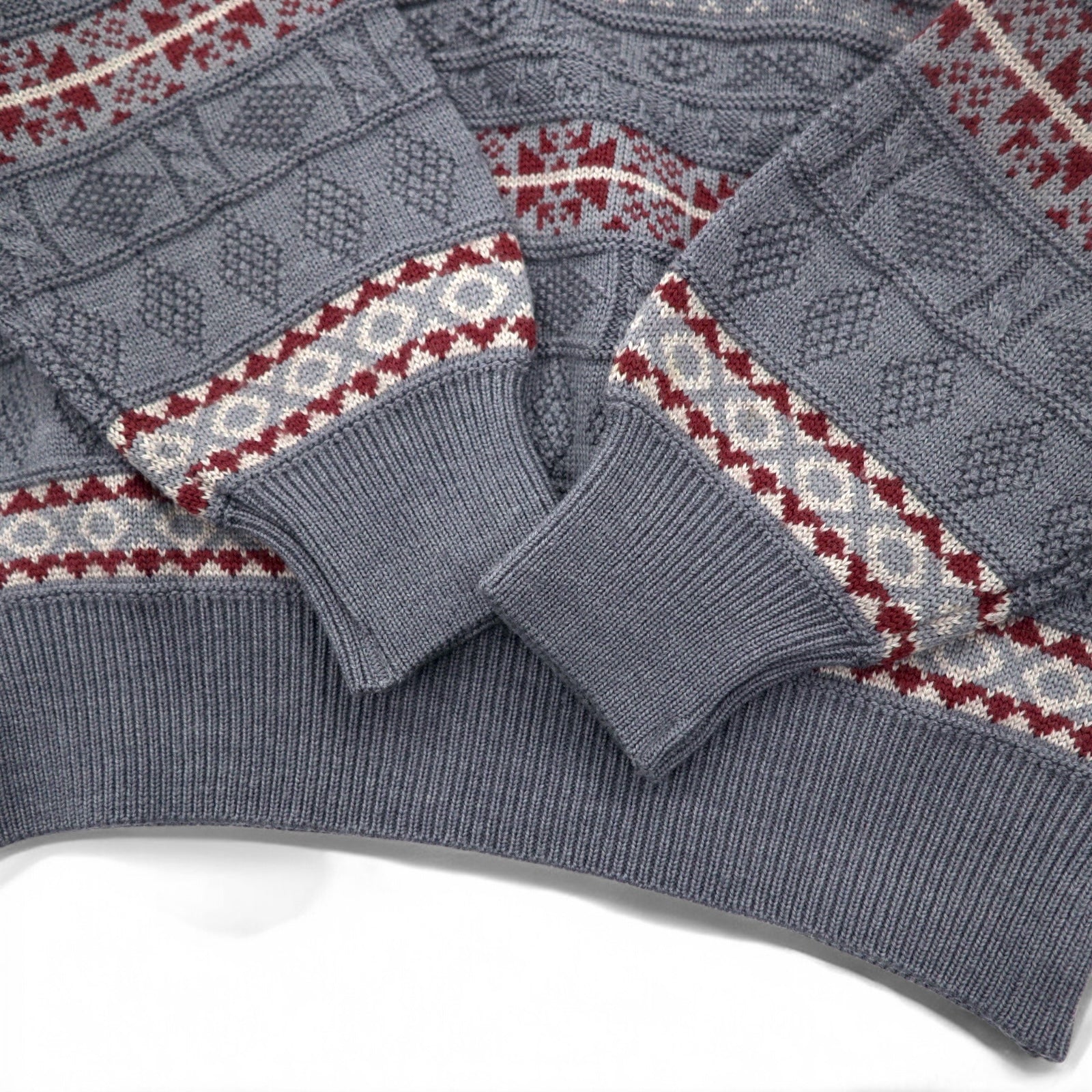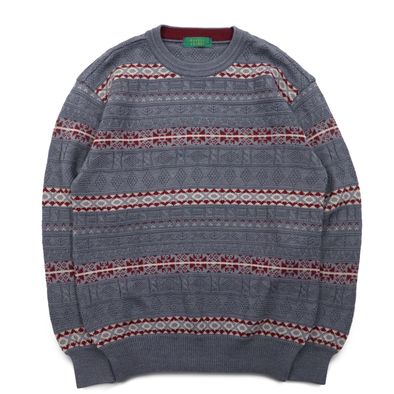ARNOLD PALMER 90年代 ジャガード ニット ノルディック セーター M グレー ボーダー 総柄 日本製