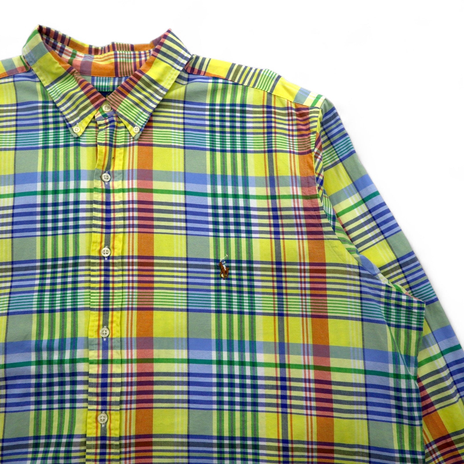 RALPH LAUREN ボタンダウンシャツ 2XL イエロー チェック ビッグサイズ スモールポニー刺繍