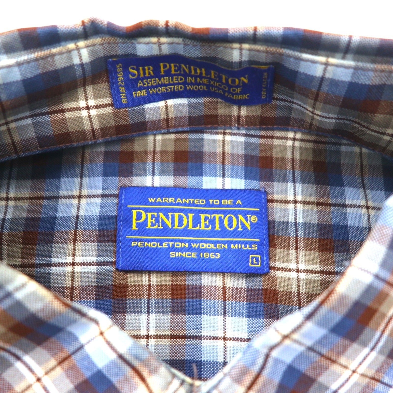 PENDLETON ウール チェック ボタンダウンシャツ L ブルー ブラウン メキシコ製