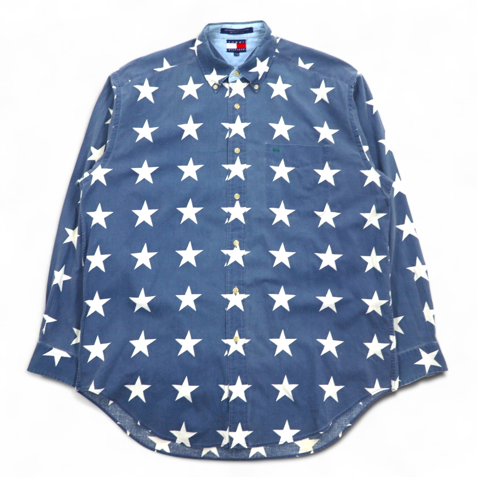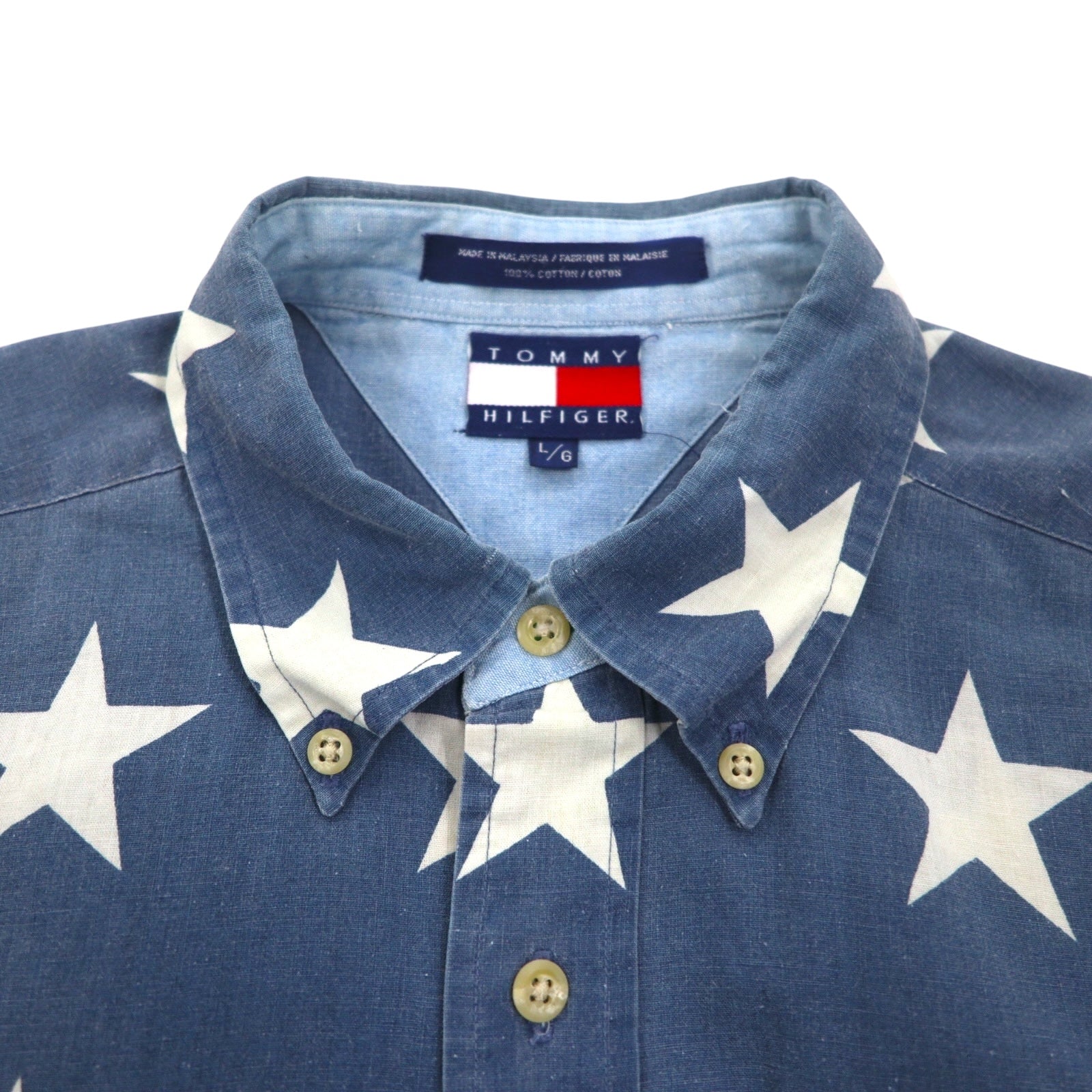 TOMMY HILFIGER 90年代 星柄 ボタンダウンシャツ L ネイビー コットン