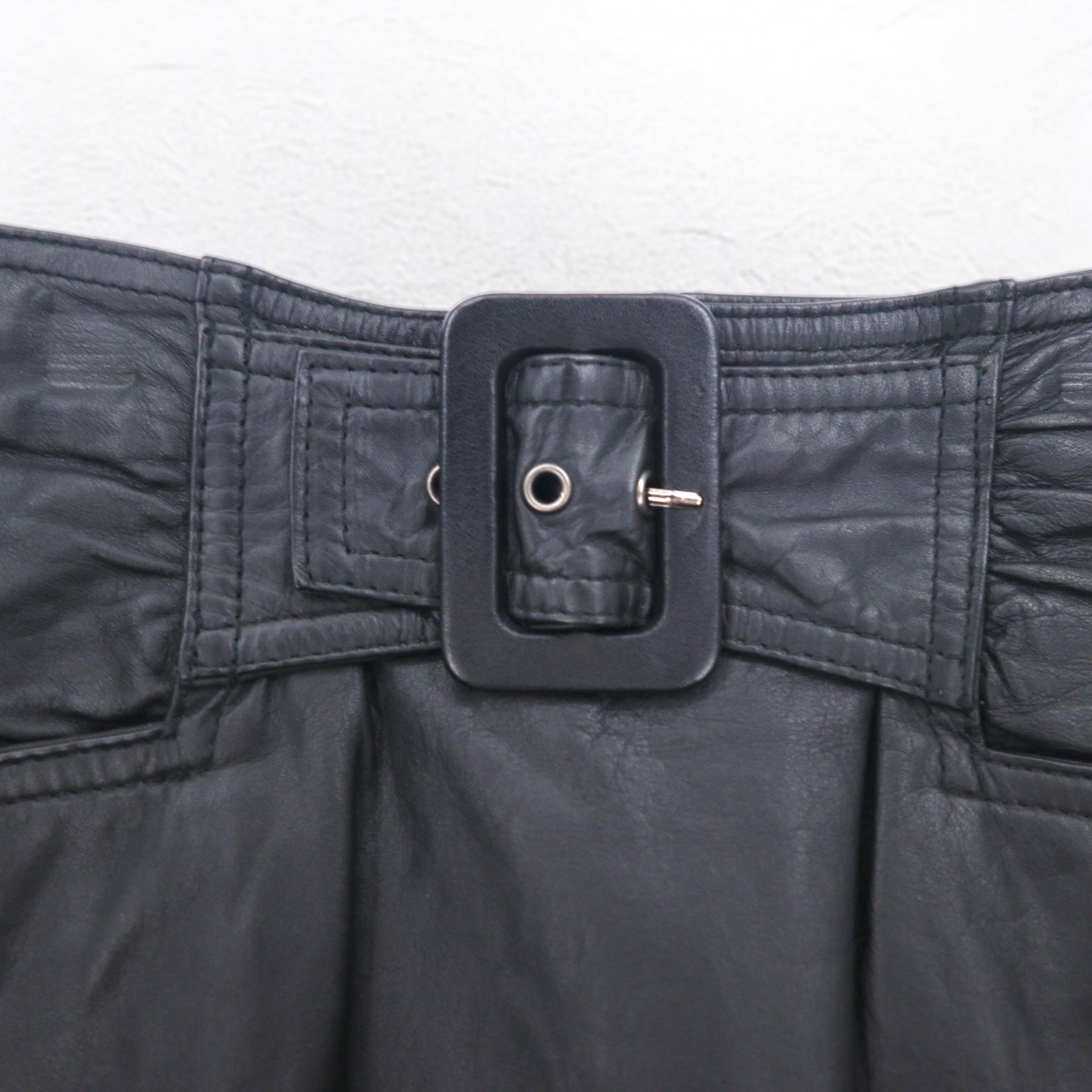 Vintage 90s Leather Skirt U・L・C 90年代 ベルテッド レザースカート S ブラック