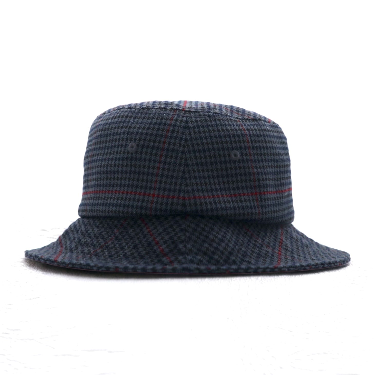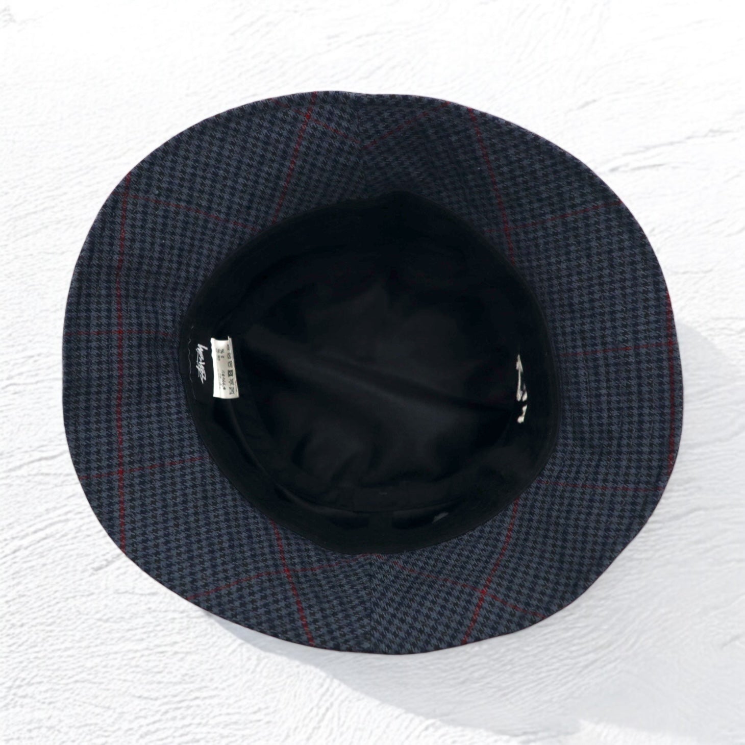 stussy バケットハット L/XL グレー 千鳥格子 チェック ストックロゴ 刺繍 Big Logo Check Bucket Hat