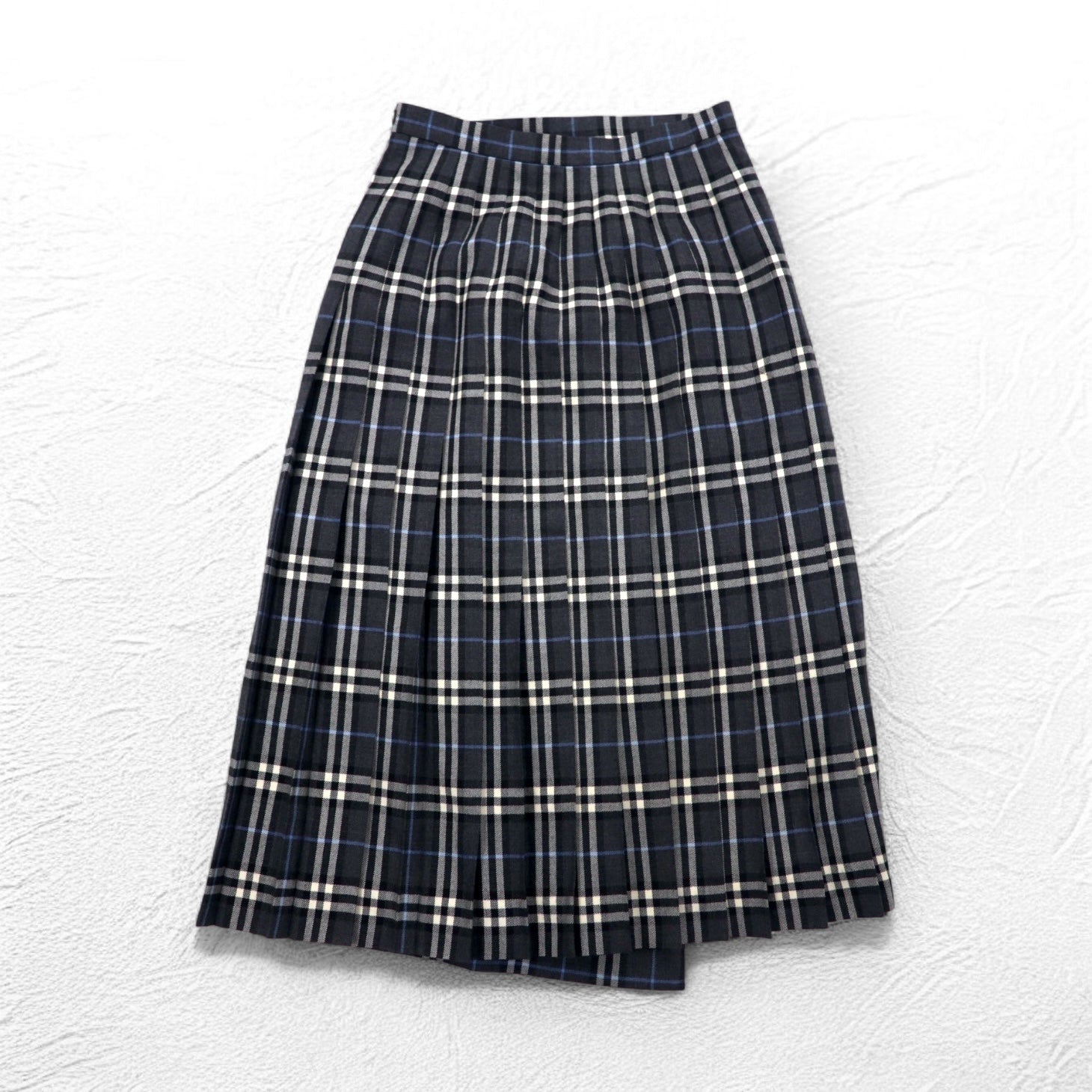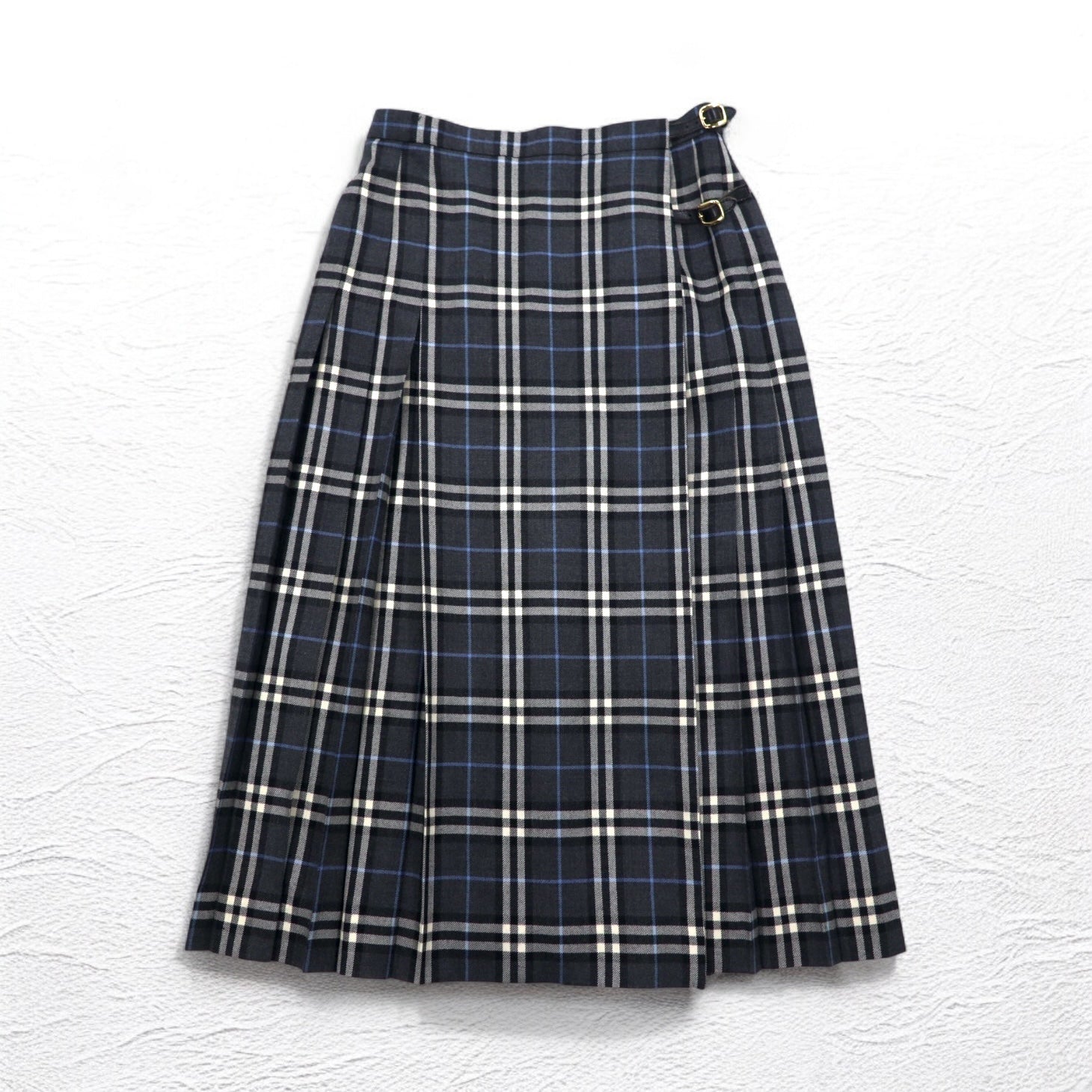 BURBERRYS ノバチェック ラップ プリーツ スカート L グレー ウール FXA14-068 日本製