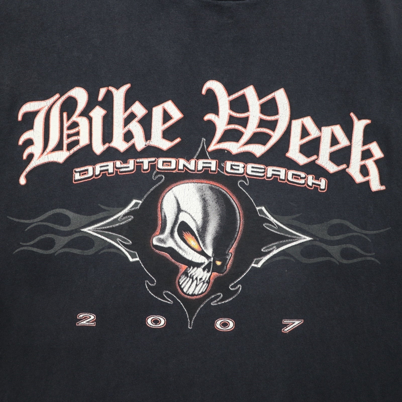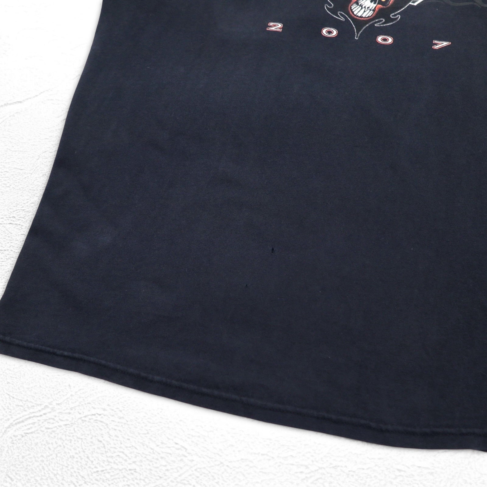 DELTA 00年代 KNIT IN USA スカル プリント PRO WEIGHT Tシャツ XL ブラック 両面プリント Bike Week