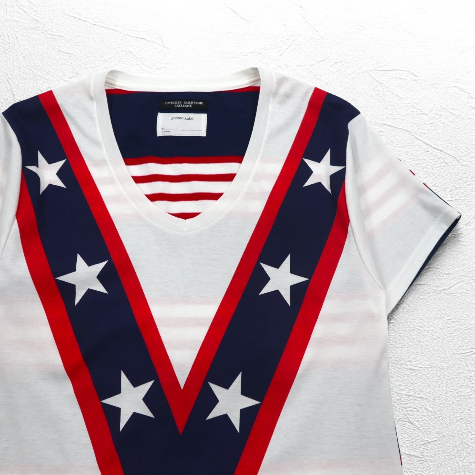 yoshio kubo × LOVELESS Vネック Tシャツ M ホワイト 星柄 GUILD PRIME別注 日本製