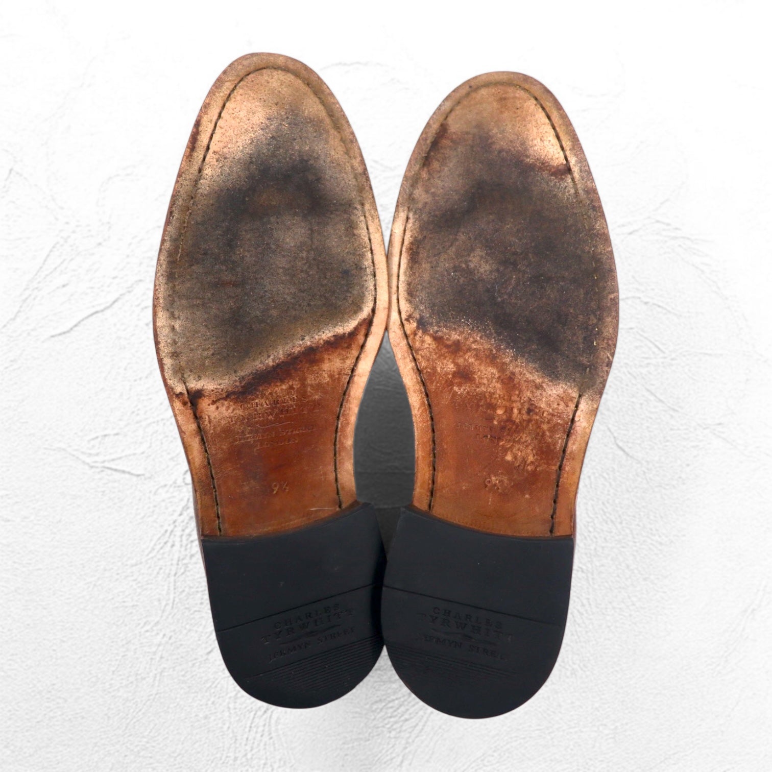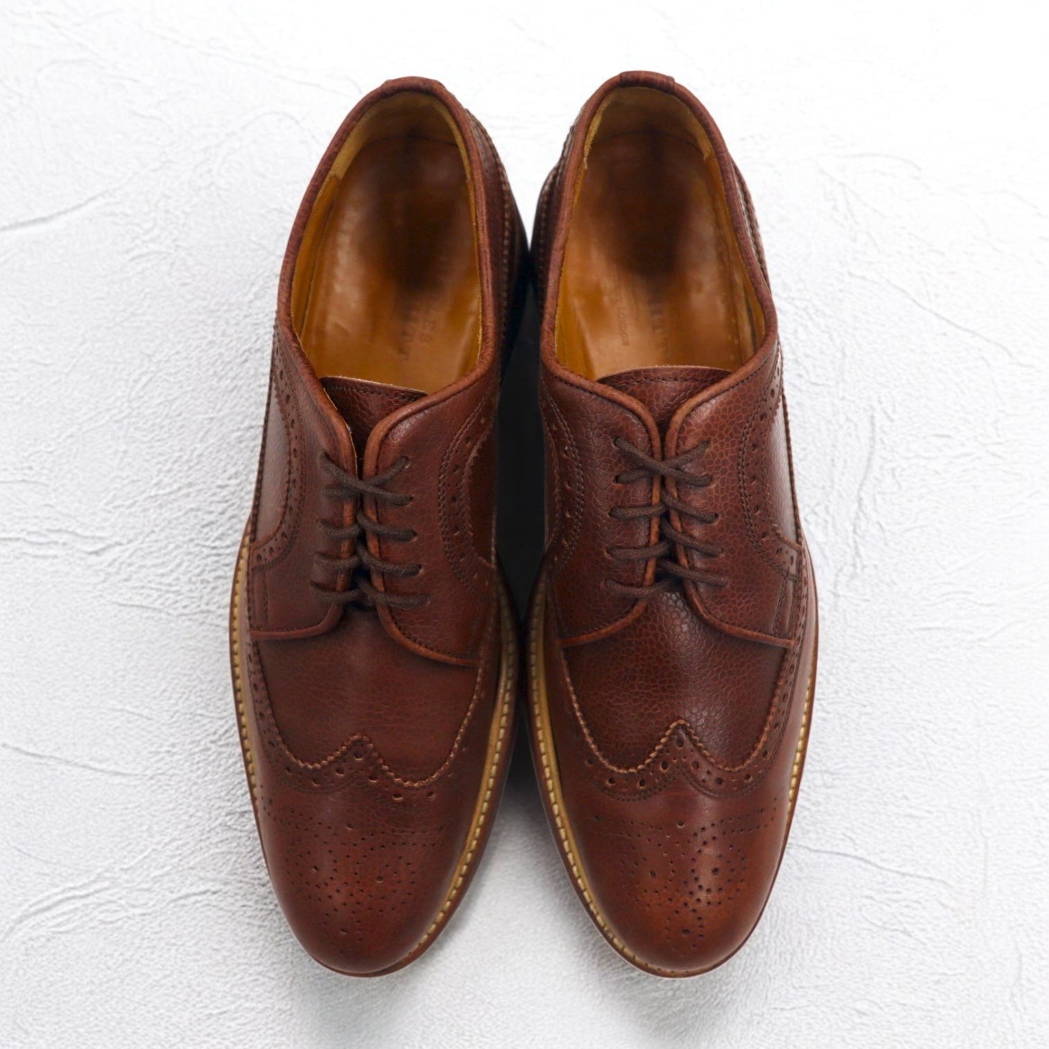 CHARLES TYRWHITT イギリス製 ウイングチップ フルブローグ カントリーシューズ 28.5cm ブラウン レザー シボ革 MDO65BRN