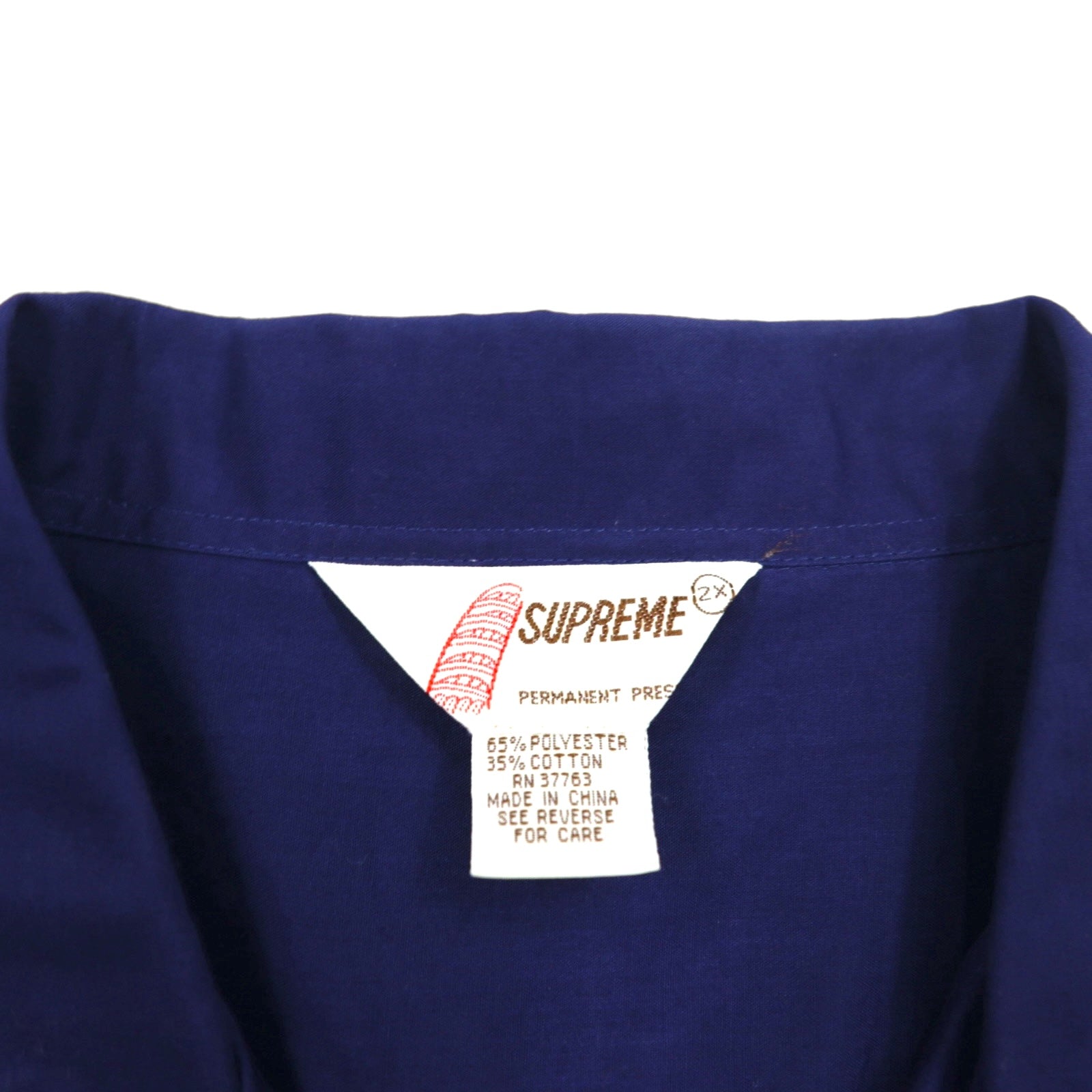 80年代 SUPREME オープンカラー キューバシャツ 開襟 ボックスシャツ 2XL ネイビー ポリエステル コットン