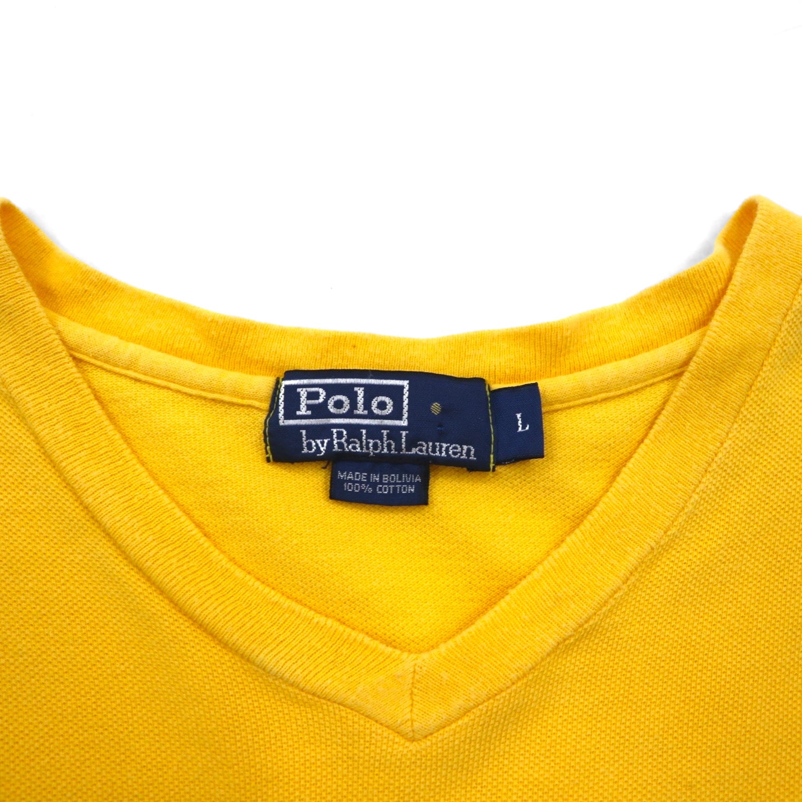 Polo by Ralph Lauren 90年代 ラインデザイン Vネック 鹿の子 Tシャツ L イエロー コットン スモールポニー刺繍