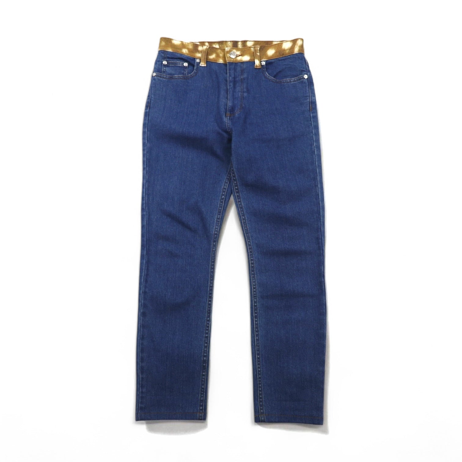BURBERRY 現行タグ SKINNY MID-RISE ミッドライズ スキニージーンズ デニムパンツ M ブルー ストレッチ レザーパッチ
