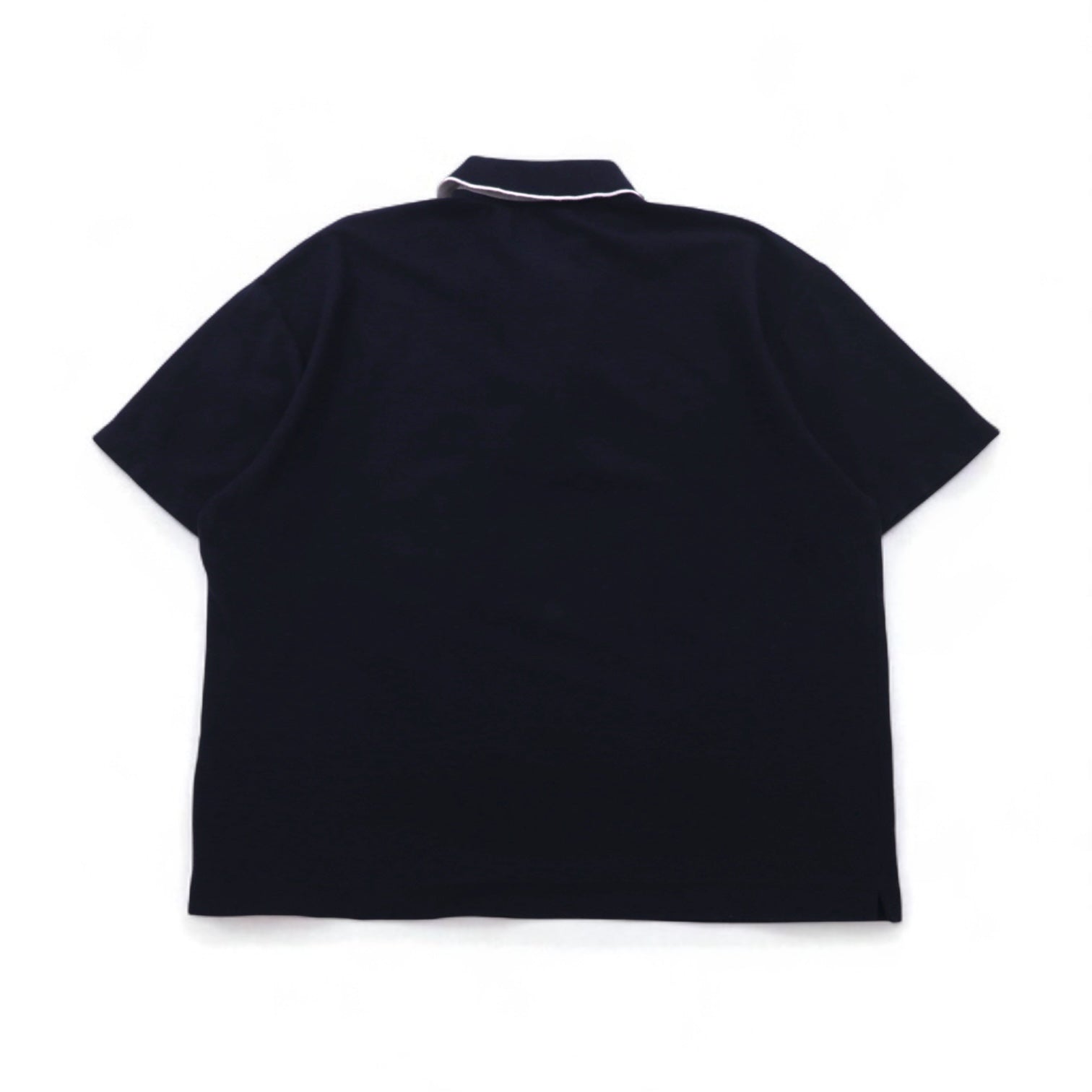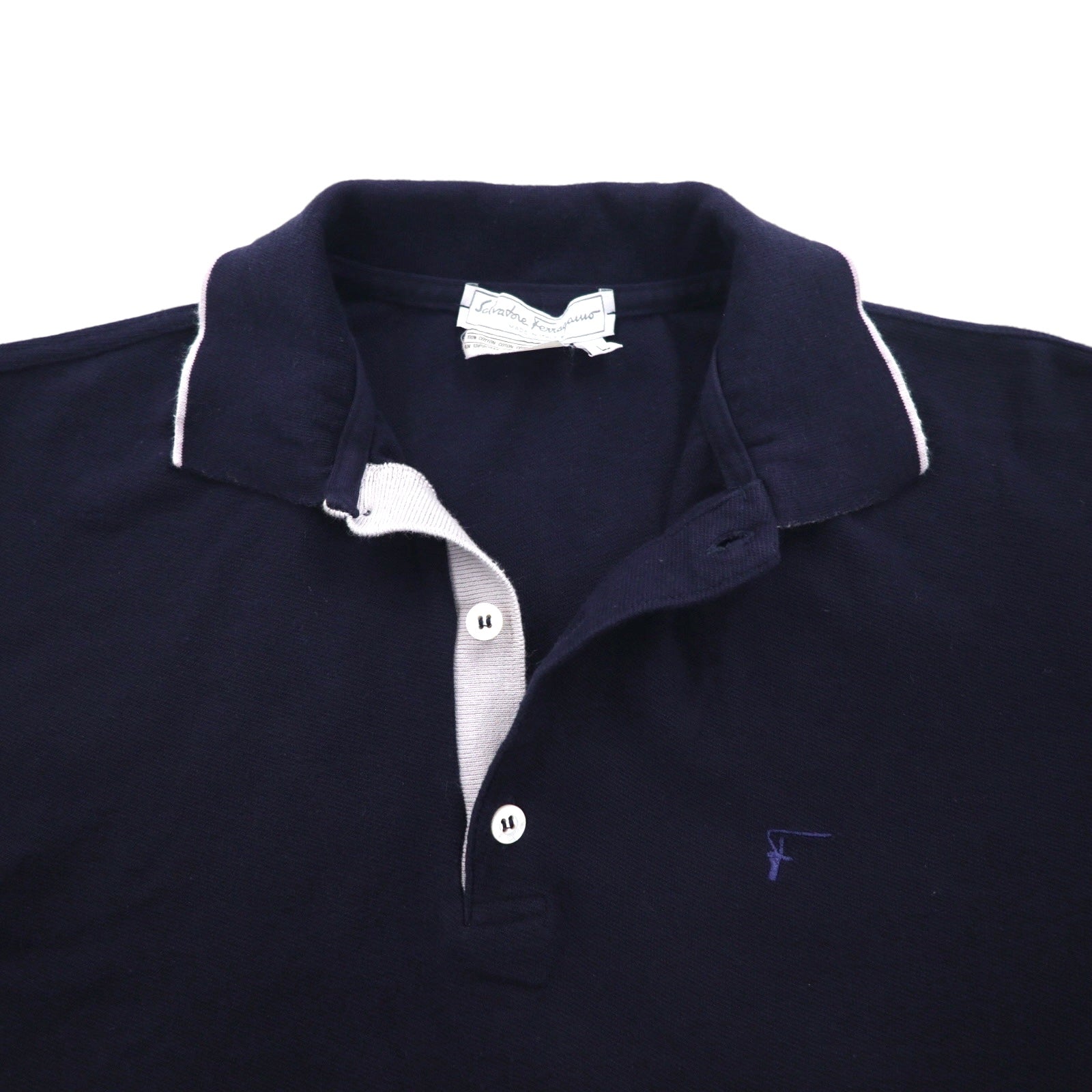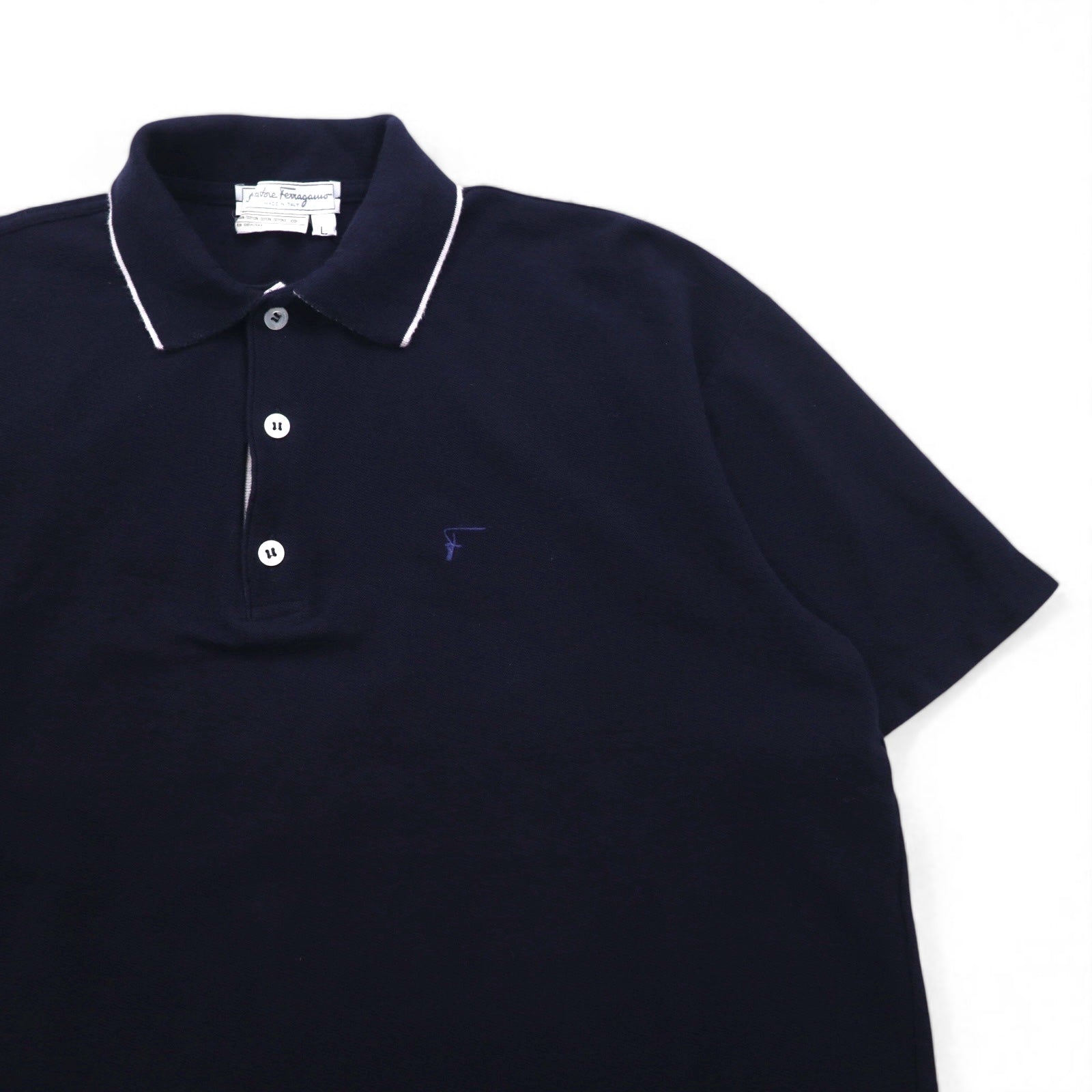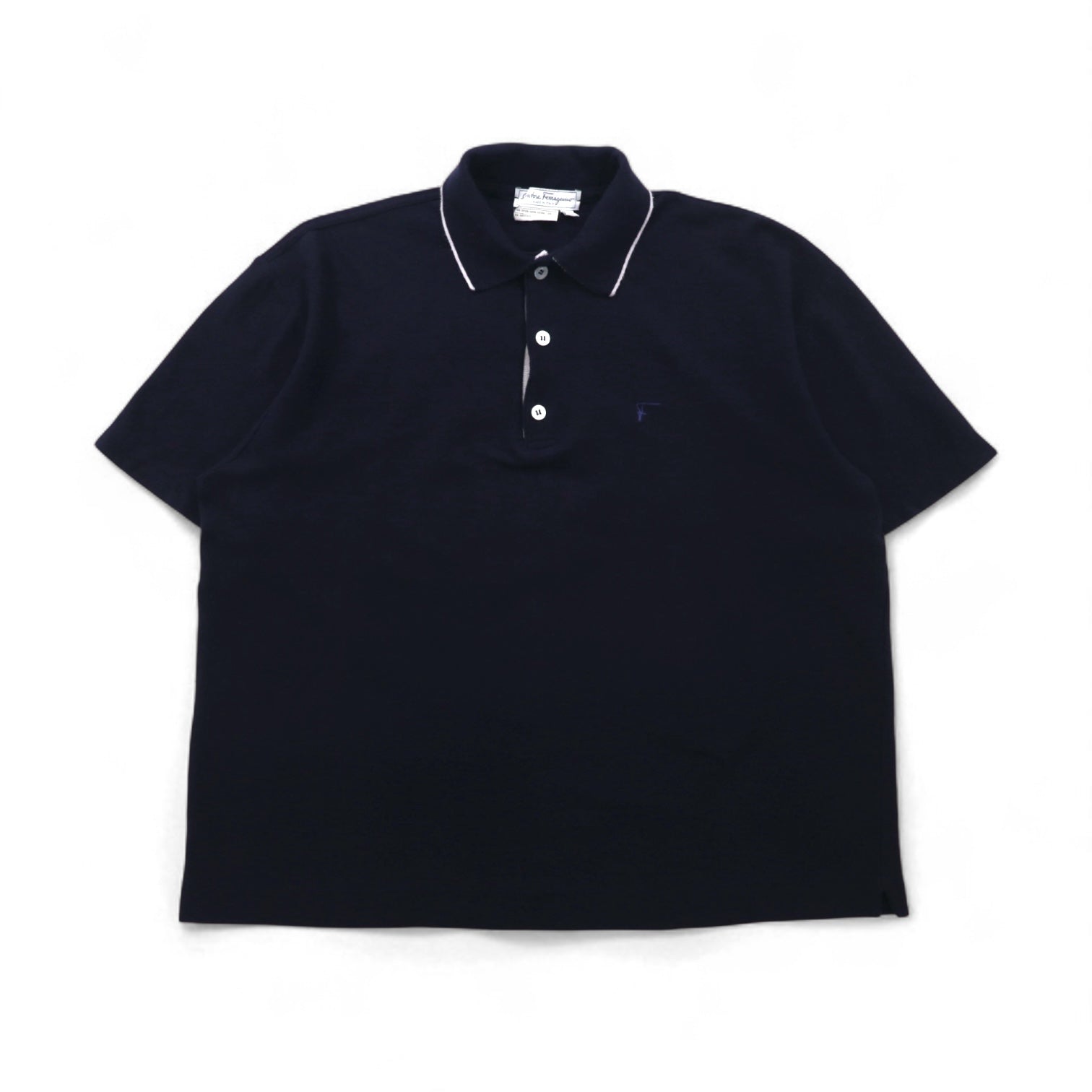 Salvatore Ferragamo イタリア製 ワイドシルエット ポロシャツ L ネイビー コットン ワンポイントロゴ刺繍