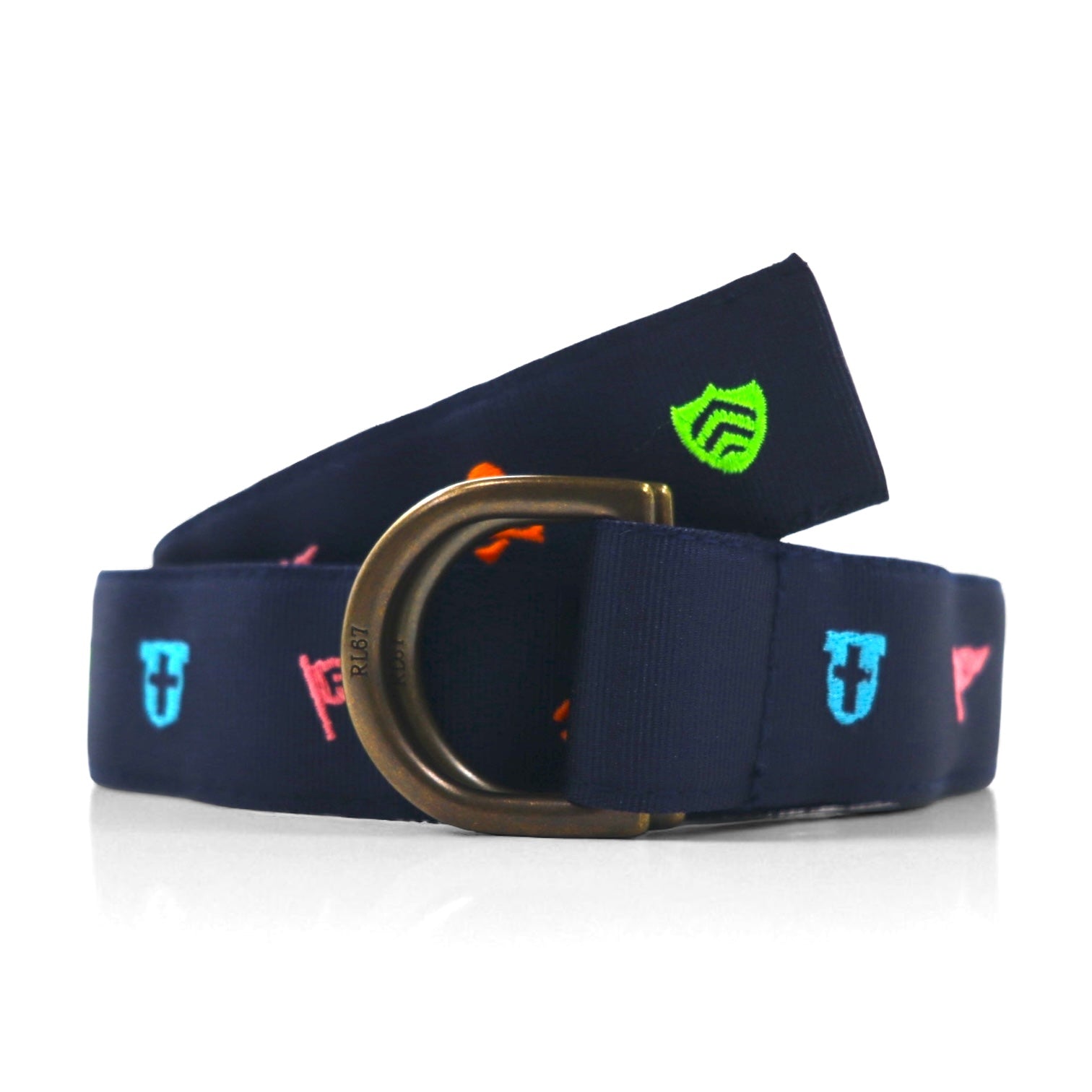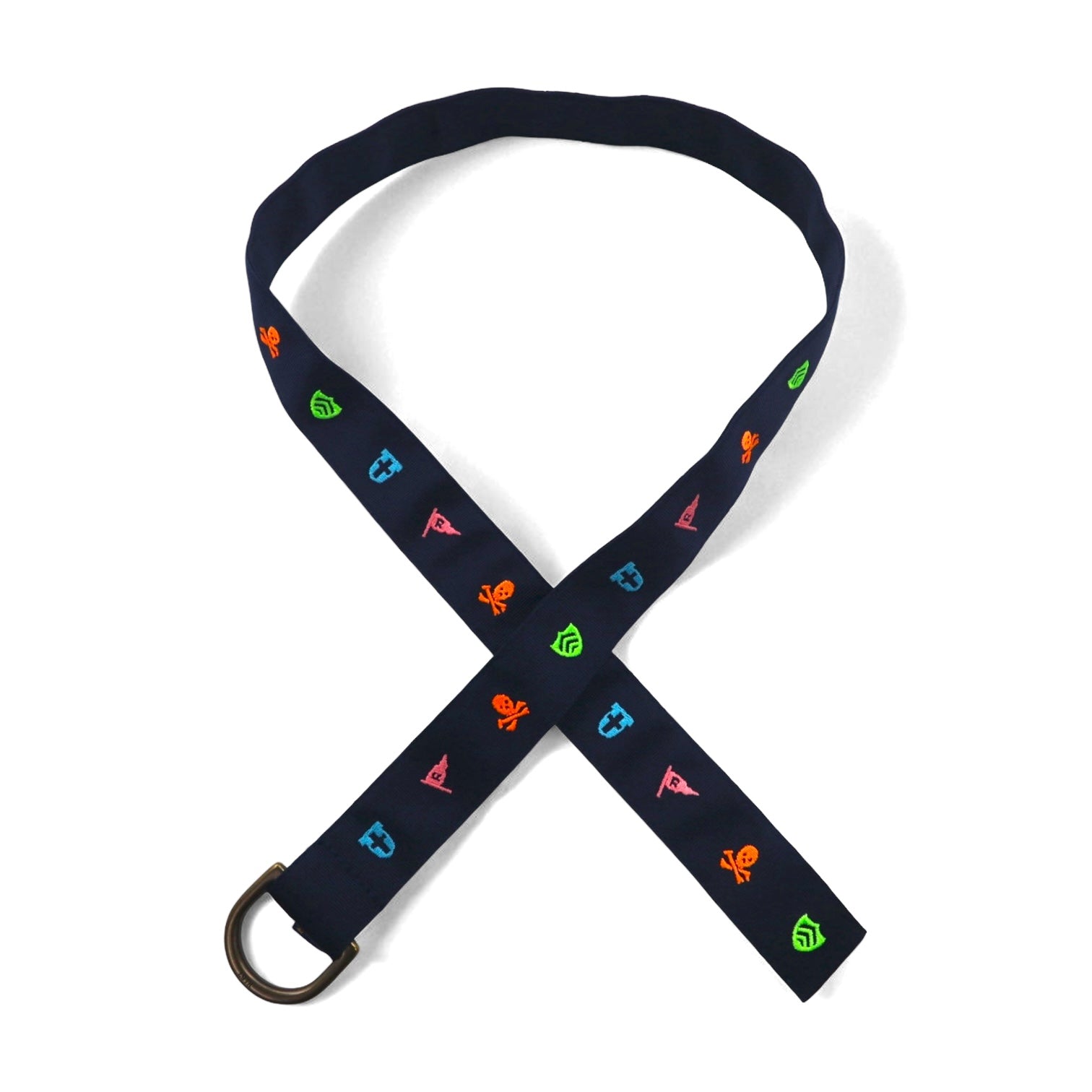POLO RALPH LAUREN リングベルト L ネイビー ナイロン スカル ロゴ エンブレム 刺繍